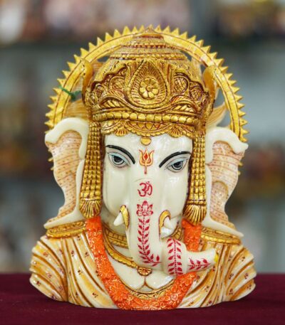 Marble Dust Ganesha Ji Face Statue Sitting on a Table