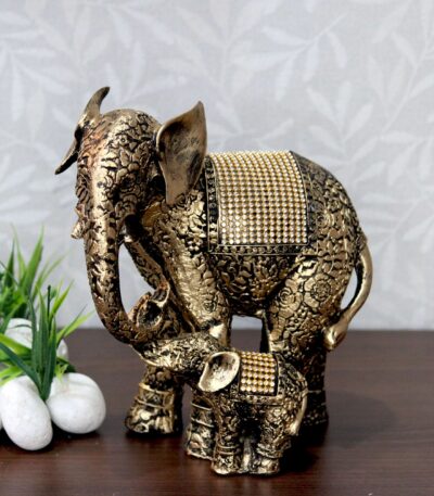 Elephant Family Statue Antique Design Sculpture for Home Decor Showpiece Figurine
