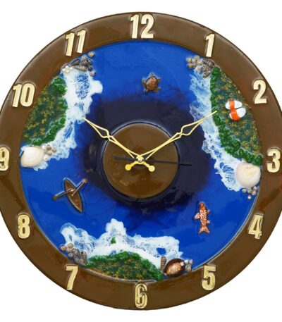 Exquisite Wooden Handmade Wall Clock Ocen Blue ith Green And White Printed Acrylic Wall Clock For Home & Office Decorative Big Size Clock (16 Inch)