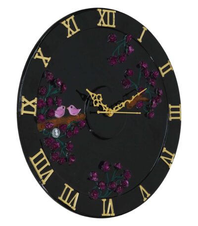 Exquisite Wooden Handmade Wall Clock black With Dark pink and golden Printed Acrylic Wall Clock for Home & Office Decorative Big Size Clock (18 Inch)