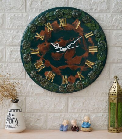Exquisite Wooden Handmade Wall Clock Green With Brown Printed Acrylic Wall Clock for Home & Office Decorative Big Size Clock (16 Inch)