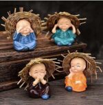 Handcrafted Set of 4 Baby Monk Decorative Showpiece (Polyresin)