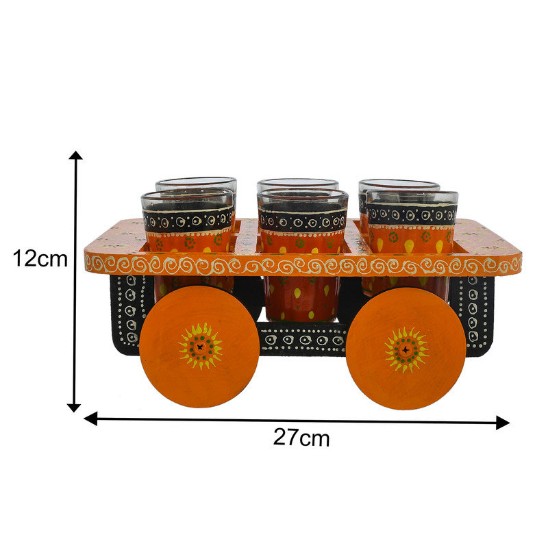 HandPainted Alluminium Tea Kettle with 6 Glasses and Wooden Tray For Home D?cor , Tea Party , Serving