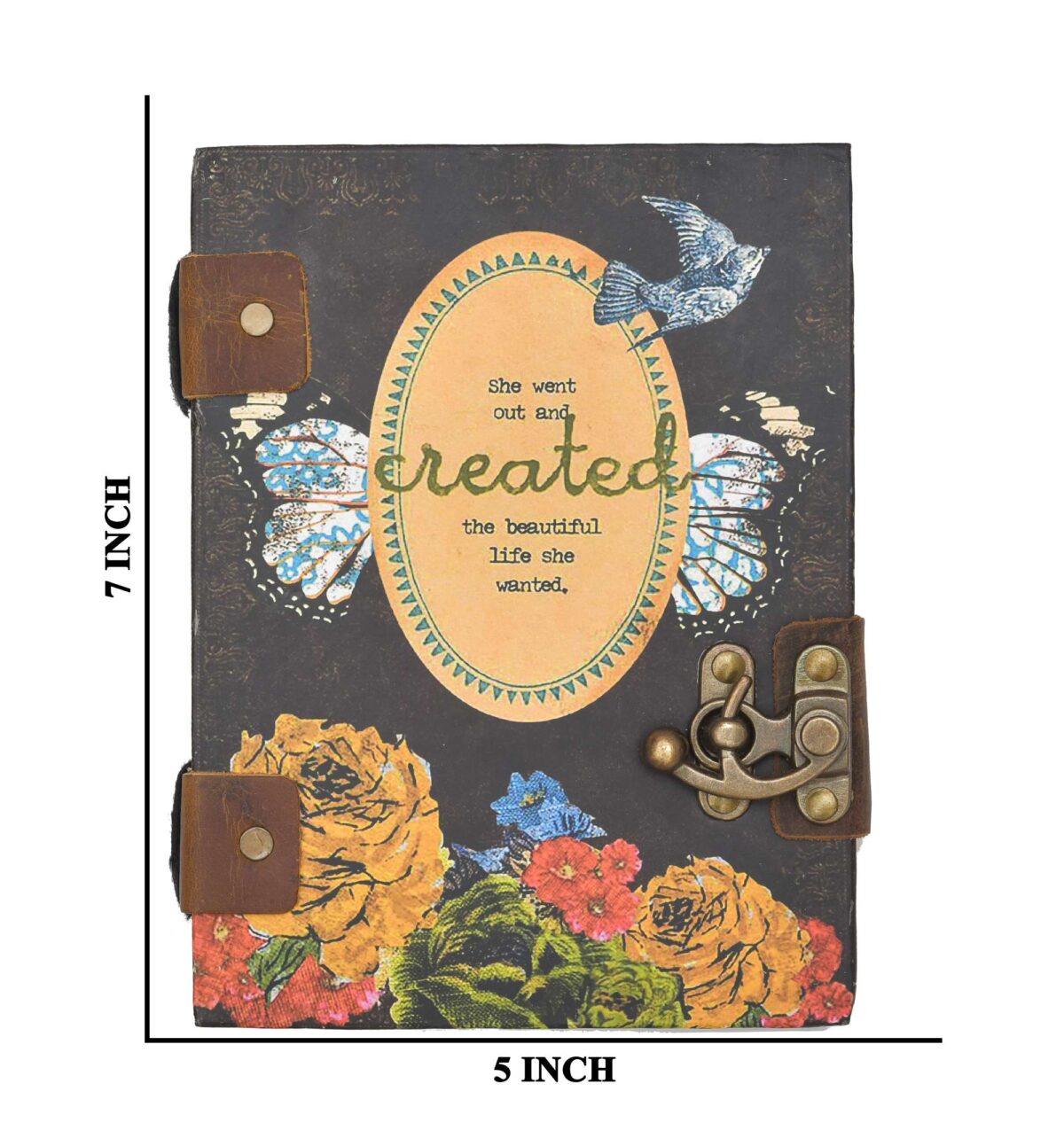 vintage handmade leather journal. Crafted with genuine leather, it radiates authenticity and charm, perfect for those who appreciate classic craftsmanship. The premium antique lock closure adds a touch of elegance and security, ensuring your thoughts and memories are safeguarded within its pages. Inside, you’ll discover 200 brown handmade pages, providing ample space for your musings, sketches, and stories to unfold. Whether it’s for journaling, sketching, or planning, this versatile journal is a timeless companion for your creative endeavors. Treat yourself or a loved one to this exquisite piece, a celebration of tradition and creativity