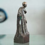 This decorative statue depicts Mahatma Gandhi, the iconic leader of the Indian independence movement and champion of non-violent resistance. The statue is made of a material colored to resemble copper and features Gandhi standing in a peaceful pose, draped in his signature dhoti. Below the statue is a quote attributed to Gandhi: “An eye for an eye makes the whole world blind.” This statue is a powerful symbol of peace, justice, and equality.