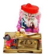 This handcrafted resin statue depicts the Hindu deity Ganesha, the Lord of Beginnings and Remover of Obstacles. He is often worshipped at the start of any new venture. The statue features Ganesha sitting at a desk, deep in thought, with a mouse at his feet. The mouse is symbolic of Ganesha’s ability to overcome even the smallest of obstacles. This statue is a beautiful and unique addition to any home or office.